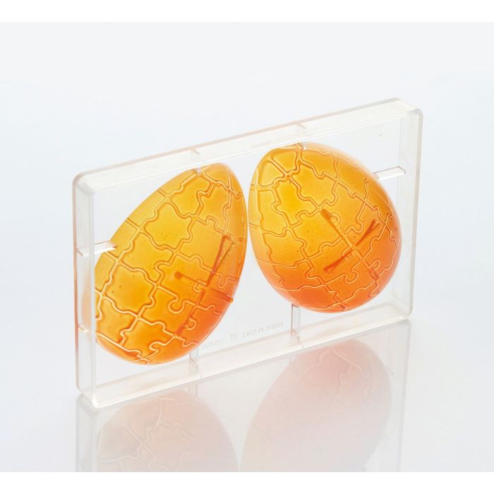 Permet de réaliser un œuf en chocolat style “puzzle” avec motifs emboîtables